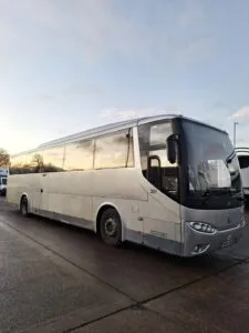 Silver 53 Seater Marco Polo Coach. Fire extinguishers. Side door access. First Aid Kit. Toilet on board. Electric Doors. Air Conditioning. 3 Point Seat Belts. Euro 3. Fully Automatic Gearbox. MOT – 18.12.2025 […]